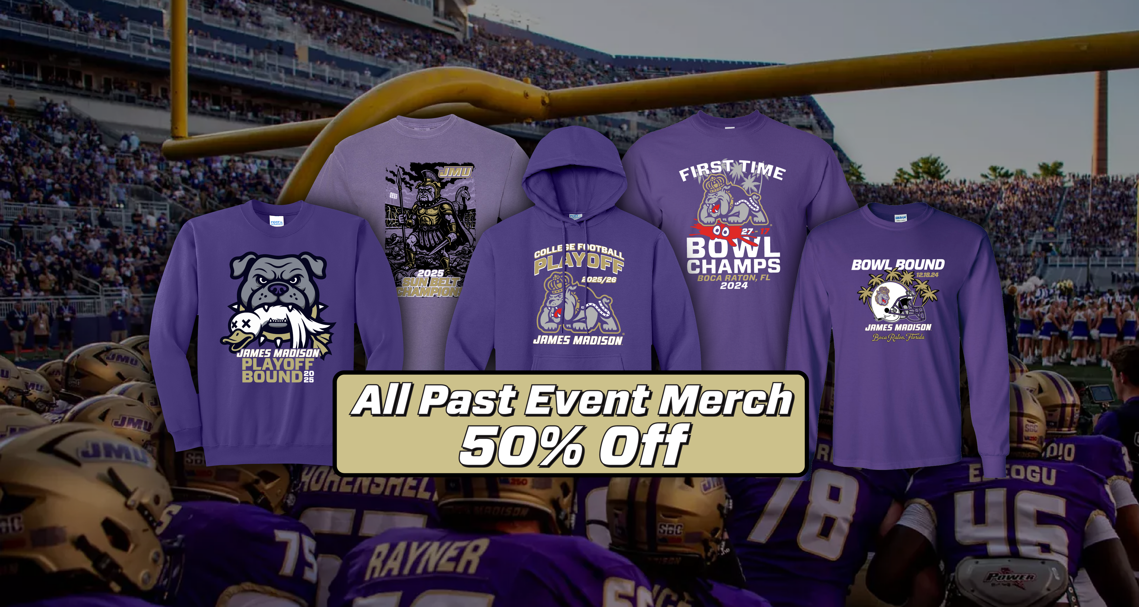 All garments are screen printed in Harrisonburg, VA by JMU Alumni-Owned Collegiate Customs.