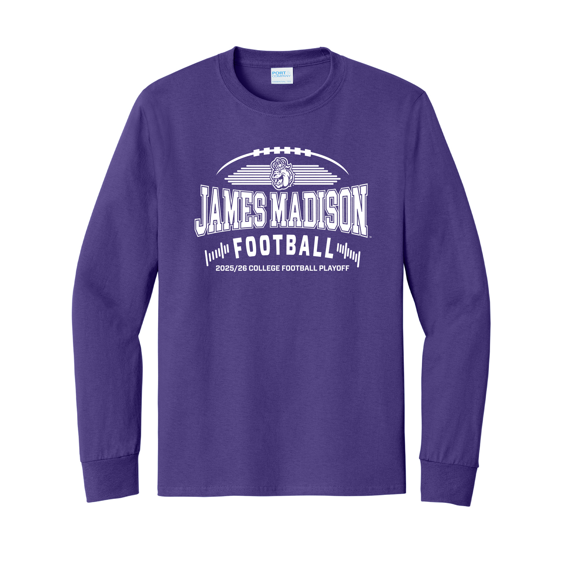 Get your Officially Licensed JMU College Football Playoff Long Sleeve Cotton shirt today! Printed on a purple cotton Long Sleeve T-Shirt. Nothing beats this traditional t-shirt in comfort, versatility and casual style.